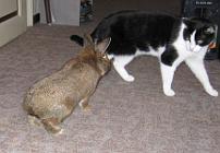 | Was hast du denn für ein schwarzweißes Fell, schaust ja ganz anders aus als ich. | Wenn man mich schon in der Wohnung flitzen läßt, dann folge ich dir mal ganz unauffällig. |