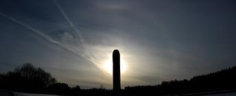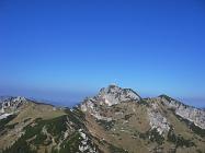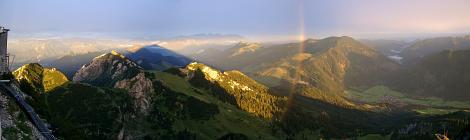 Die Sonne strahlt über dem Leitzachtal. Dahinter Traiten und Seeberg. Leichtes HDR. | Blick nach Westen zur Gipfelkapelle und ehemaligen Wetterstation. |