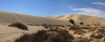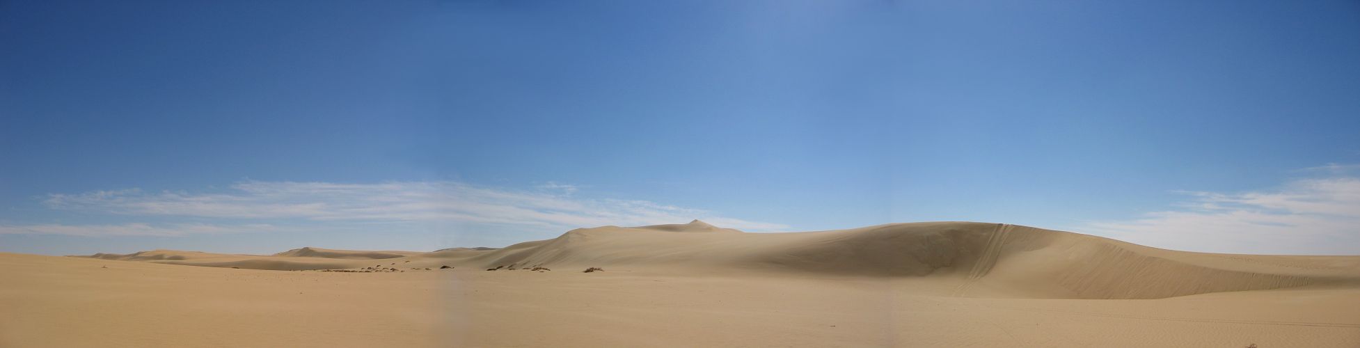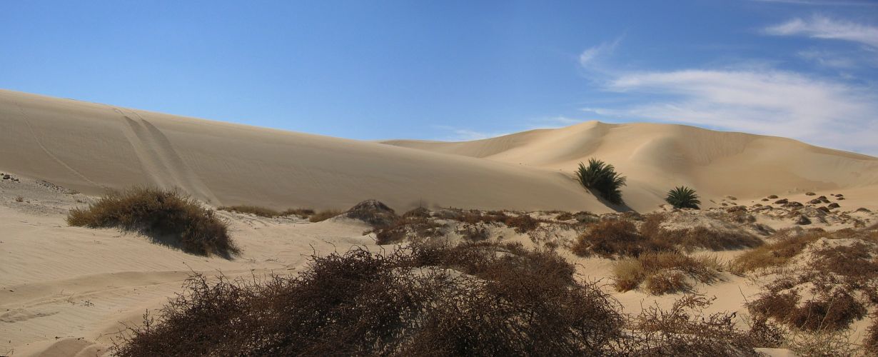 Wanderdünen begraben die Palmen unter sich. | Mitten im großen Sandmeer. |