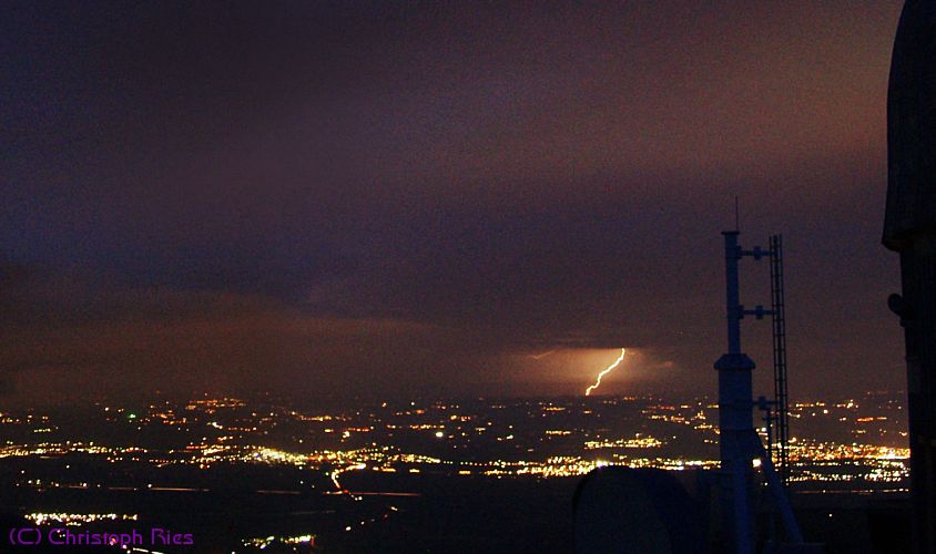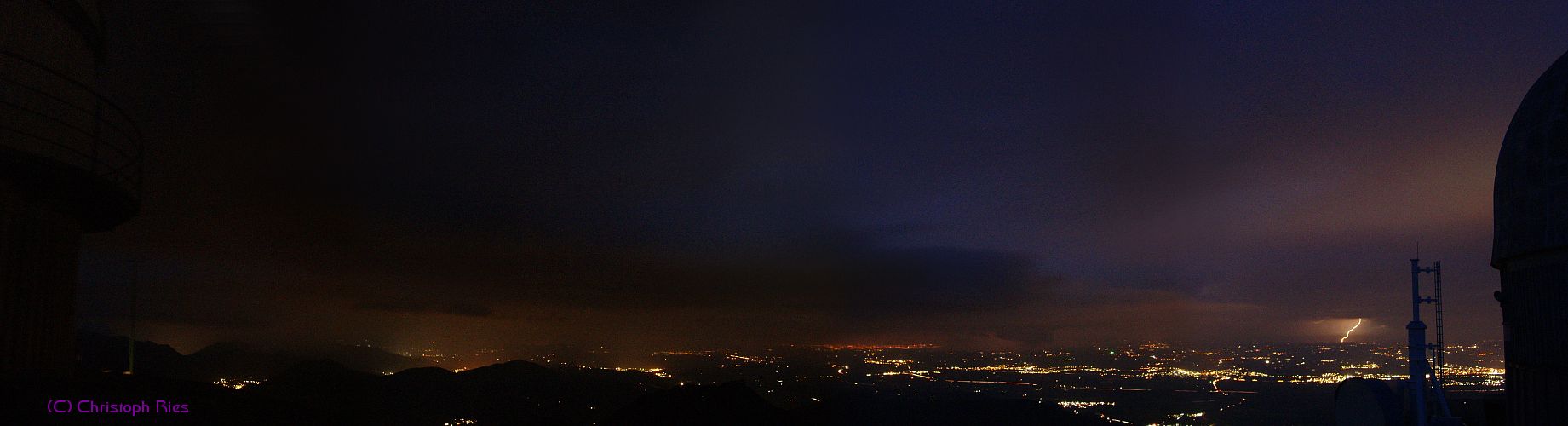 120 Grad Panorama eines Gewitters nördlich von Rosenheim. | Ausschnitt aus dem Panorama, Impression mit Blitz. |