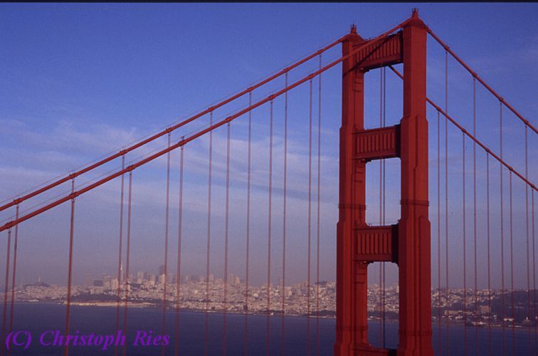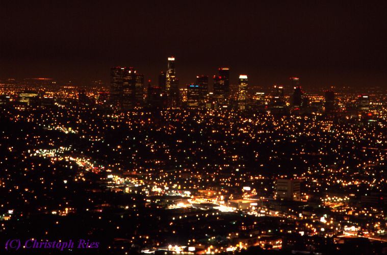 Skyline von Los Angeles vom Griffith Observatory | Sonnenuntergang, gesehen im Griffith Park mit einem 1000er Maksutov | Golden Gate Bridge. |