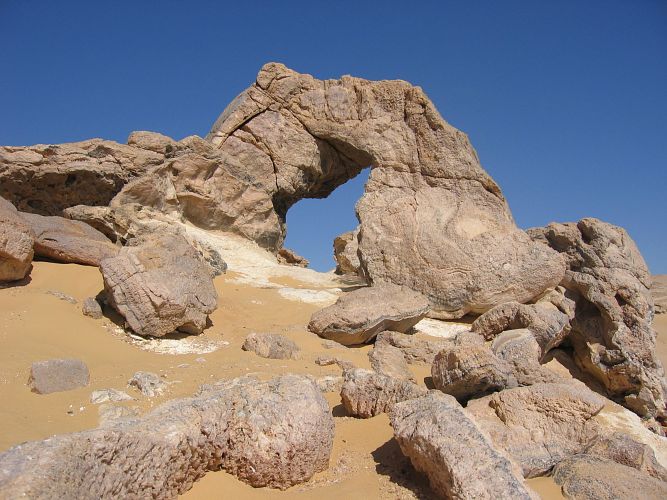 Natürlicher Torbogen am Kristallberg | Ausblick auf die Kalksteinformationen der Weißen Wüste | Kalksteinformation in der Weißen Wüste | Weitere spektakuläre Felsgebilde |
